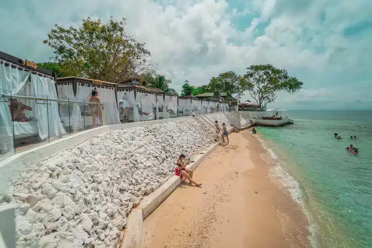 Instalaciones de Lujo: Cabanas, camas de playa, zonas lounge y restaurante gourmet.