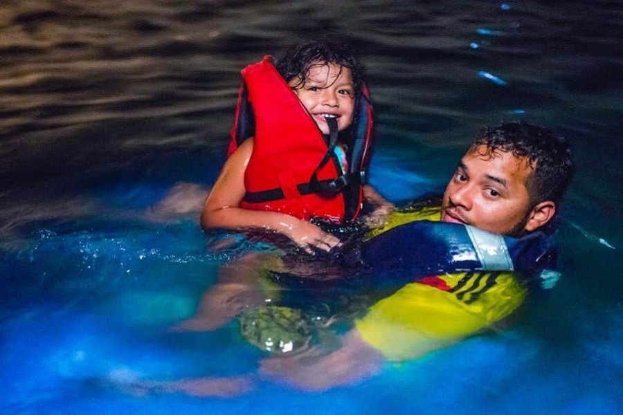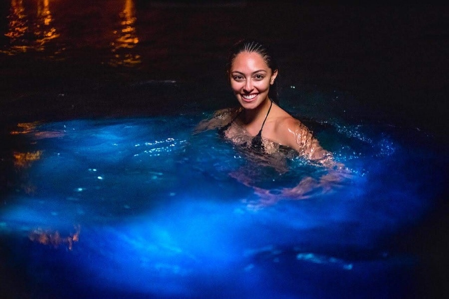 Llegada la noche ocurre un fenómeno “Plancton luminoso” casi único que puede observarse en pocos lugares del globo.